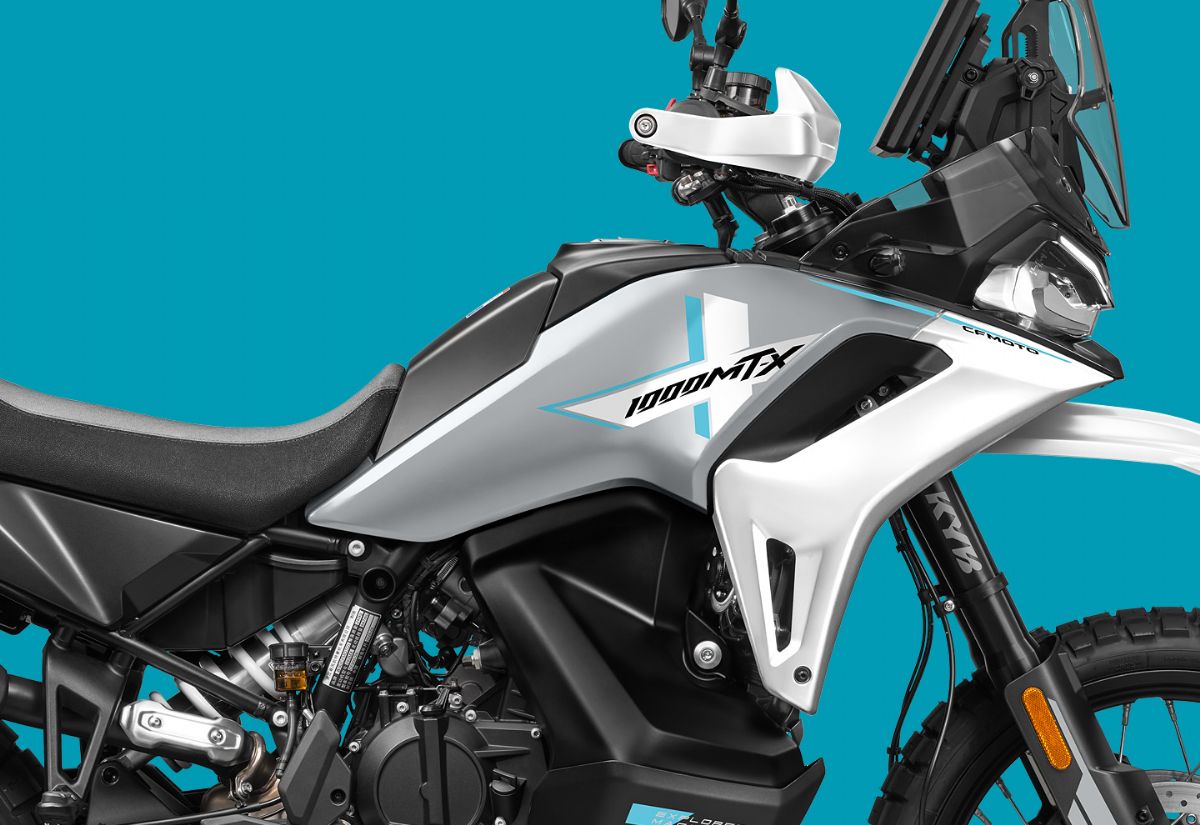 The CFMOTO 1000MT-X equips riders for boundless long haul adventures with cutting-edge technology and advanced rider aids that deliver confidence across every mile. MT-X family design with an aggressive, rally-inspired front beak, high fender, and muscular tank forms Narrow upper body and 2-1 seat design improve rider feel and control - seated on road or standing off road Adjustable windscreen and position-adjustable handlebars enable fine-tuning for rider height and conditions Full aluminium skid plate & chain guard for durability; robust handguards for brush & weather protection Twin side-mounted fuel tanks lower the centre of gravity, improve balance, and preserve knee room for stand-up riding