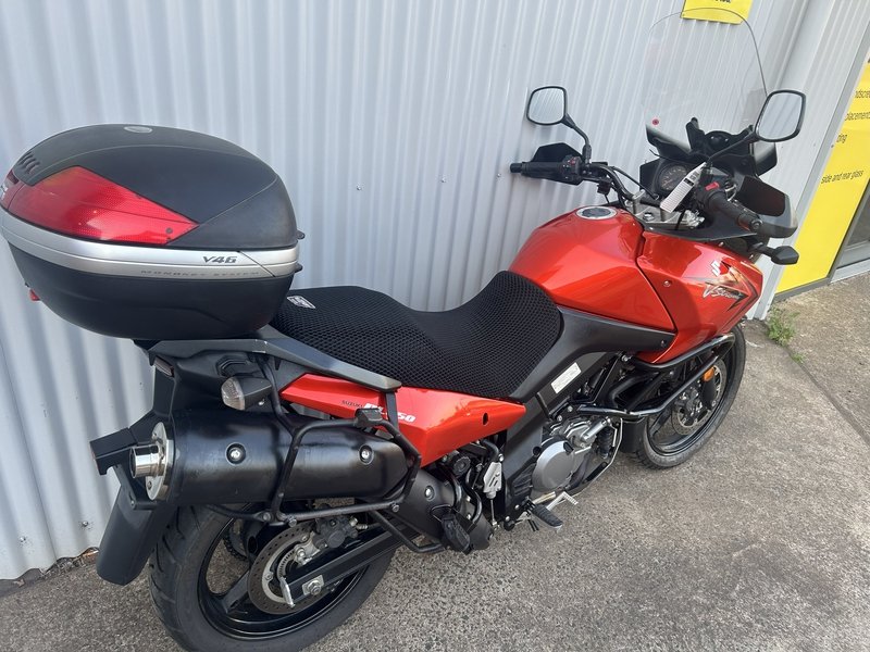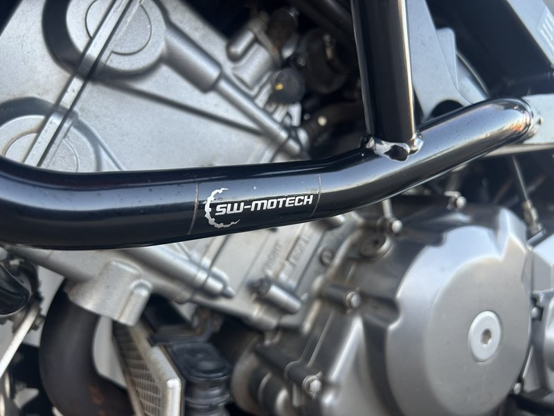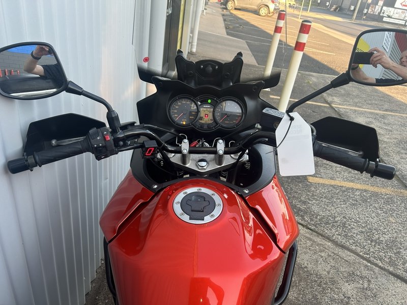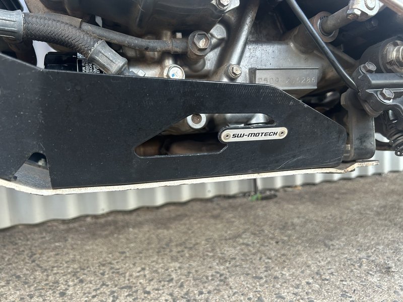 This bike features a duel pannier set plus top box. Has a centre stand, bashplate,crash bars, GIVI screen, Wind Rider seat cover, and a ram mount.